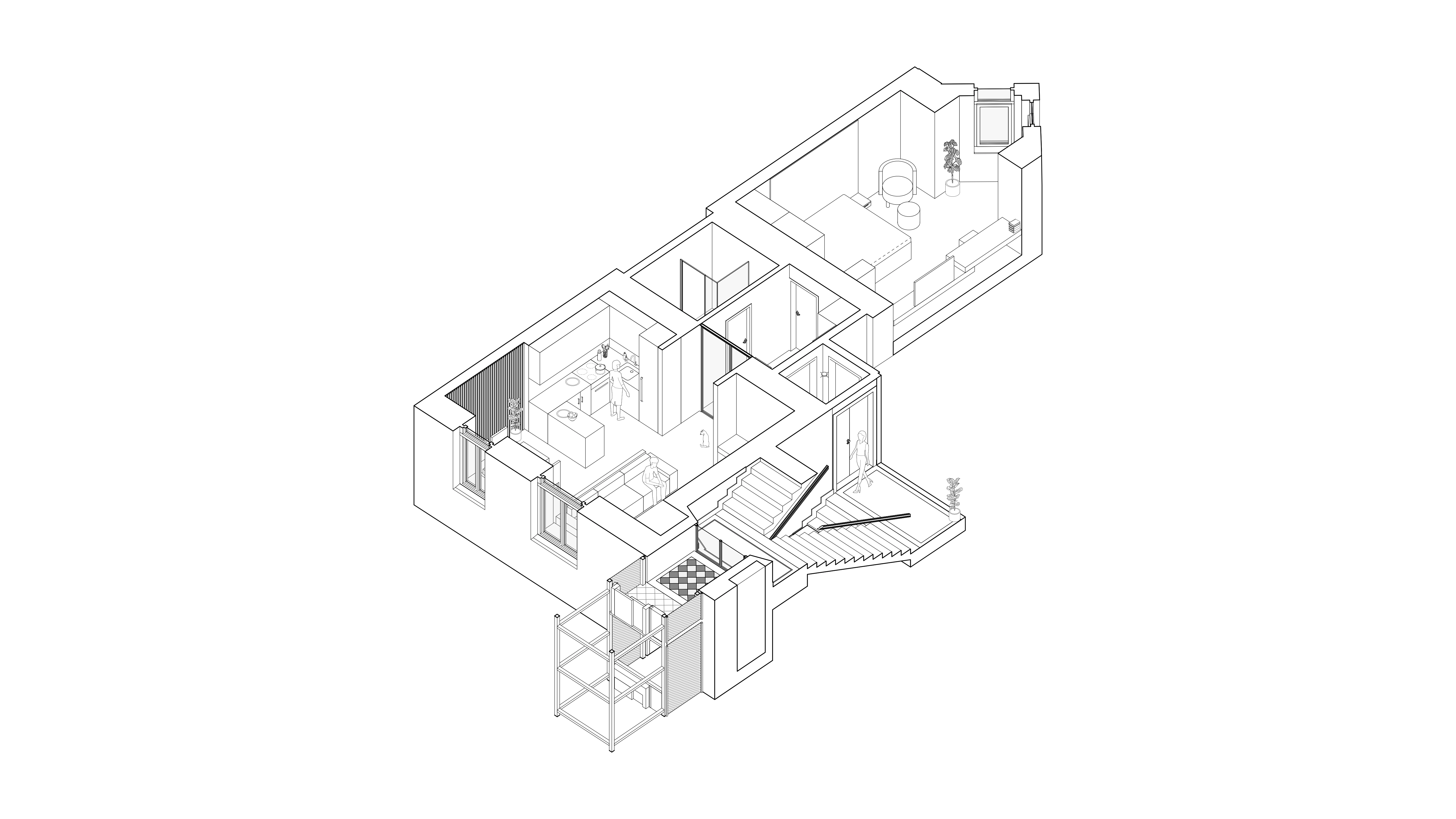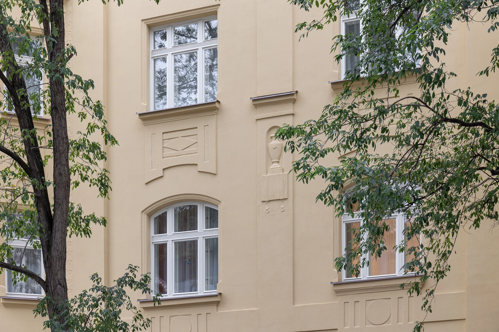 Rezidenční řadový objekt v pražském Karlíně se secesní uliční fasádou byl postaven v roce 1909 a je součástí městské památkové zóny Karlín. Hodnotné společné prostory domu byly dochovány téměř v původním stavu - nášlapné vrstvy podlah, schodišťové zábradlí klenby či vstupní dveře do bytů. Historická stopa domu je značná a cílem návrhu bylo na ni navázat a vhodně ji doplnit soudobou podobou designu interiéru.