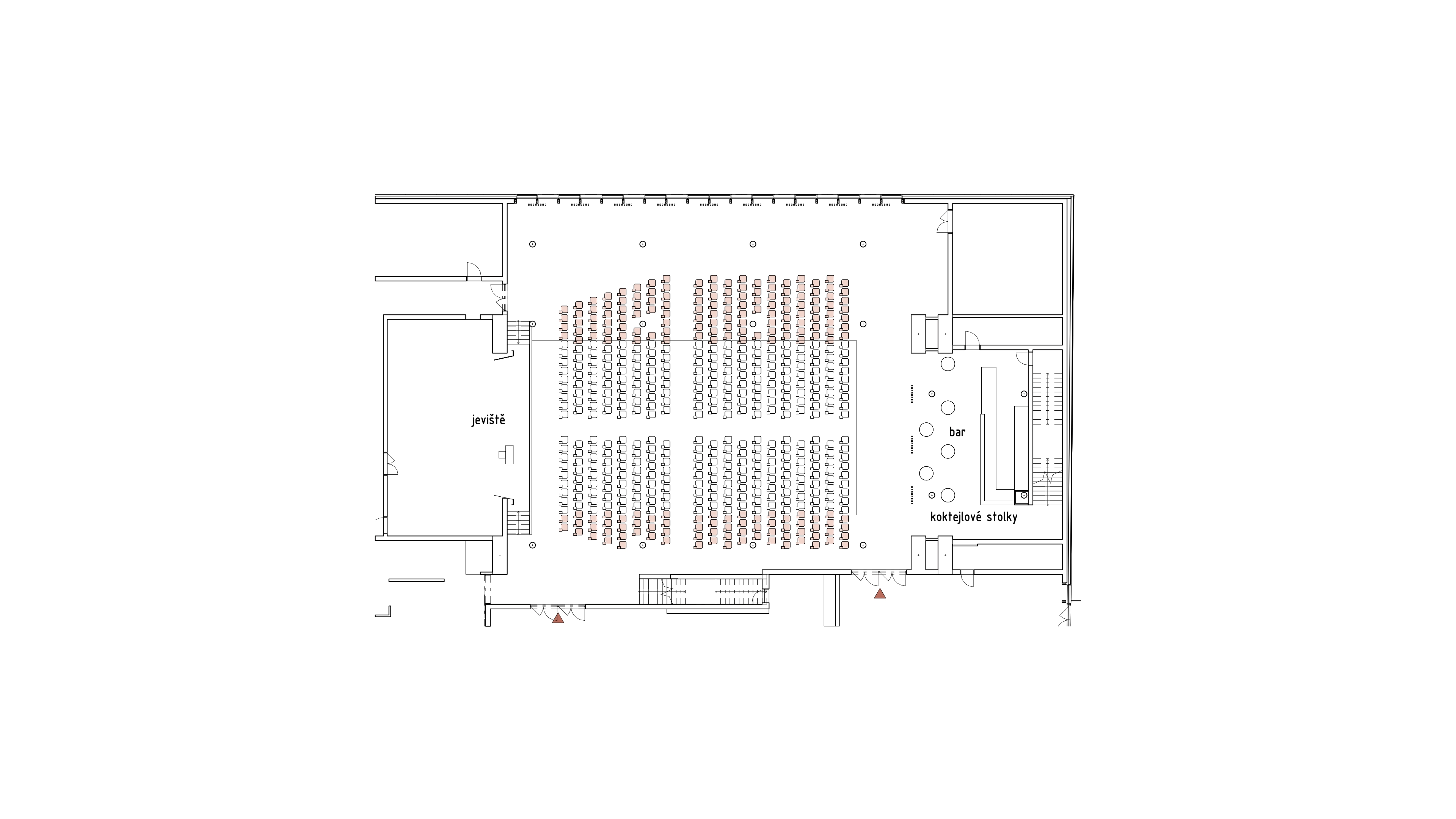 Součástí návrhu je také řešení interiéru společenského sálu, malého kinosálu a kanceláří pro zaměstnance na úrovni 3. NP. Společenský sál předpokládá variabilní uspořádání a multifunkčnost prostoru pro společenské, kulturní i vzdělávací akce. Interiér je navržen v tlumených elegantních barvách v návazností na koncept papíru. Proti tomu kinosál je tmavým prostorem odpovídajícím funkci, kde se pojetí papíru propisuje na ztvárnění akustických obkladů.