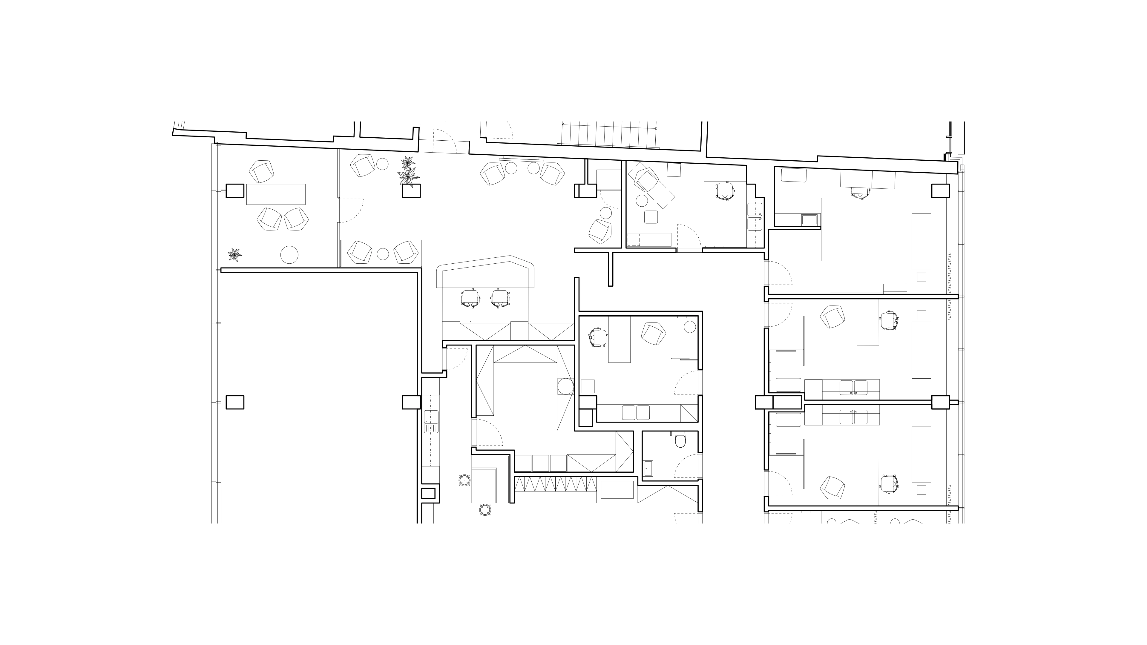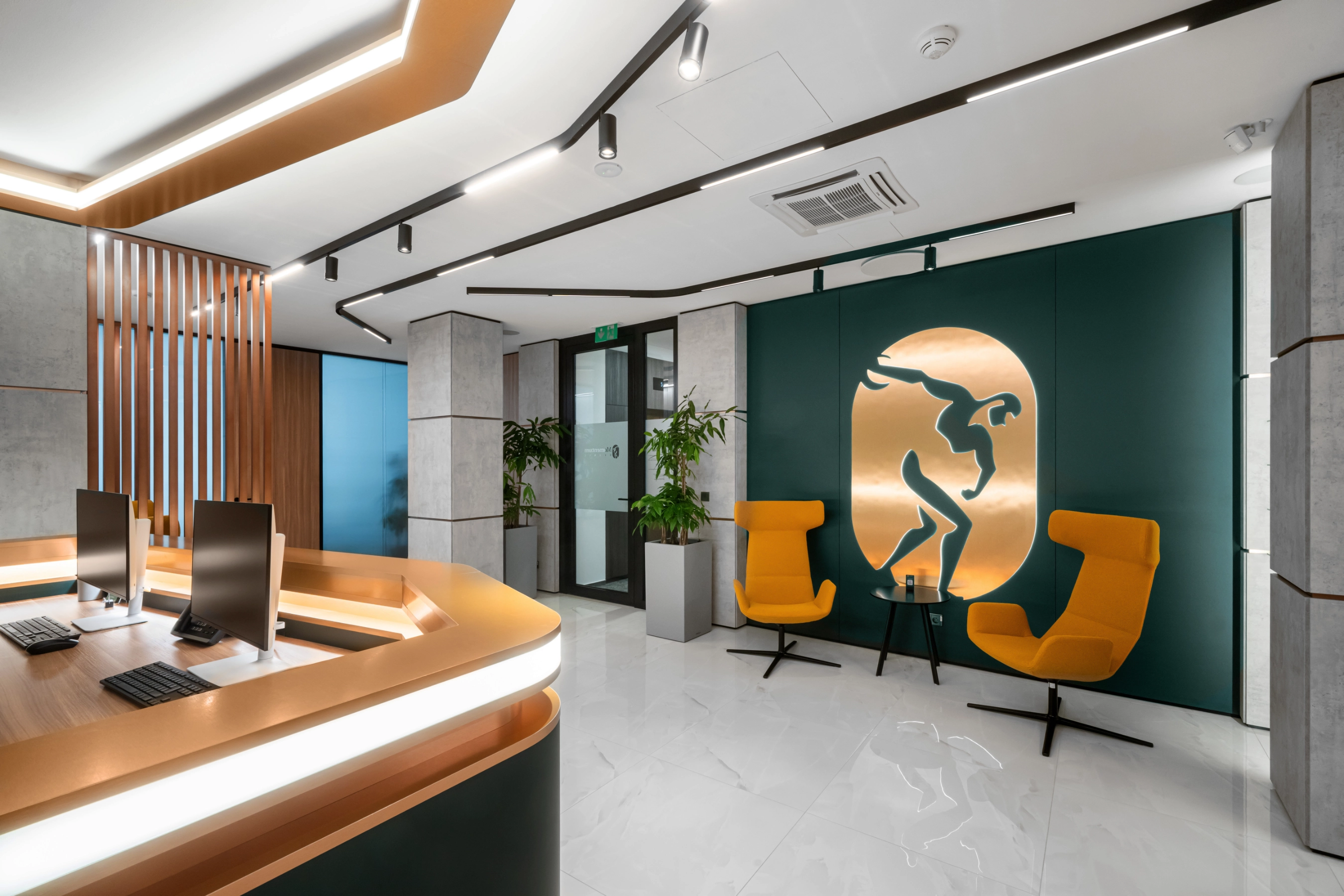 Základní koncept interiéru vychází z cíle vytvořit funkční a vizuálně energické prostředí pro péči o mužské zdraví. Každá část prostoru odráží diskrétnost, nadstandardní služby, vitalitu těla i mysli a umožňuje klientovi zažít léčbu jako luxusní zážitek. Návrh propojuje stabilní antické sloupořadí s dynamickou křivkou recepce, energickými zelenými plochami a moderním osvětlením. Pevné tradice a důstojná historie jsou tak protknuty moderní energickou přítomností. Tento kontrast odkazuje na přístup k pacientům, kdy cílem péče není zastavit čas, ale energicky s ním držet krok.