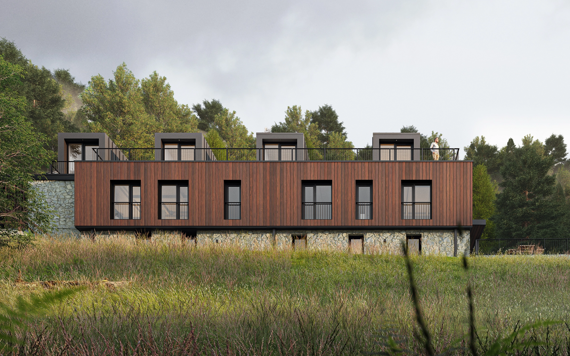 Hlavní myšlenkou projektu je zachovat charakter a tvarosloví původní turistické chaty z xx období a citlivé zasazení do kontextu Národního parku Krkonoše. Silueta sedlové střechy je charakteristická pro horské oblasti, proto hraje důležitou roli v celkovém tvarosloví objektu. Výrazné vikýře, integrované přímo do jednoduché hmoty střechy bez přesahu, přivádějí do interiéru přirozené světlo a vizuální kontakt s krajinou, zatímco formálně narušují jednolitou plochu a dodávají stavbě dynamiku.